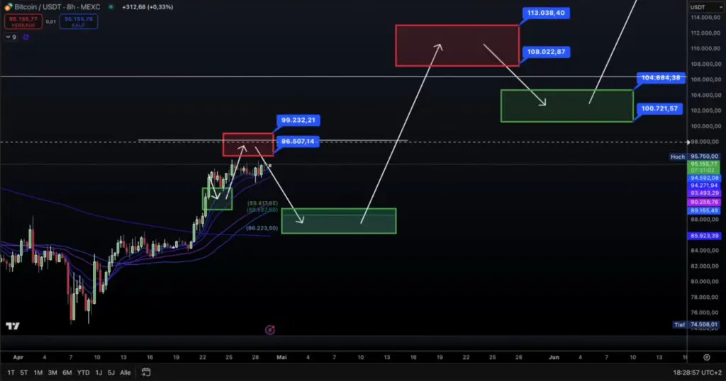 Ako Bitcoin nastavi pratiti ovaj obrazac, vjerujemo da će u prvoj fazi rasta dosegnuti vrijednost između 96.000$ i 99.000$. To je nivo koji se u ovom ciklusu može postići prije nego što nastupi korektivni val.