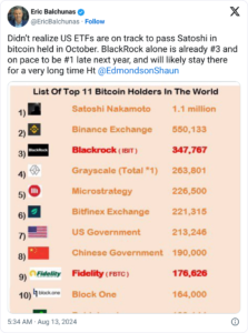 Bitcoin ETF-ovi u SAD-u mogli bi nadmašiti udjele Satoshija Nakamota