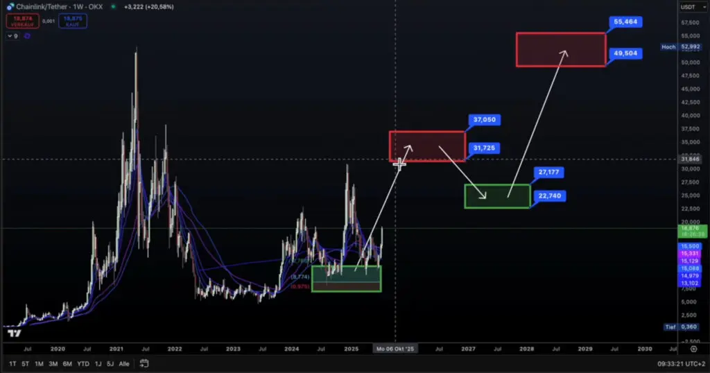 • Komentar: LINK je u tehnički jakom uzlaznom kanalu. Ukoliko se ne desi preokret ispod 22 USDT, vjerovatna je ekspandirajuća struktura ka 50+ USDT.