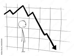 Jednostavan crtež grafikona s debelom crnom crtom koja naglo pada s lijeva na desno, simbolizirajući značajan pad. Pored linije je štapićasti čovjek, koji promatra grafikon, izražavajući zabrinutost ili promišljanje nad prikazanim podacima.