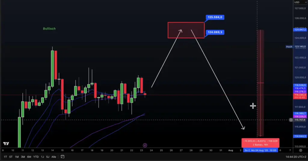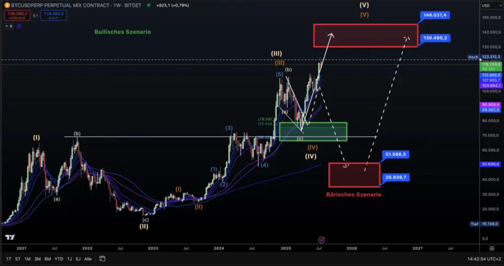Ako pažljivo pogledate priloženi grafikon, postaje jasno da se nalazimo u završnoj fazi bull ciklusa. Trend linije, ciklični obrasci i precizna vremenska struktura pokazuju da ulazimo u posljednje mjesece rasta prije očekivanog vrha.