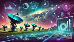 Slika prikazuje digitalni prikaz blockchain tehnologije s poveznicama koje simboliziraju lanac podataka. Razni šesterokuti međusobno su povezani linijama, dočaravajući kompleksnu mrežu decentraliziranog sustava prijenosa informacija u pozadini.