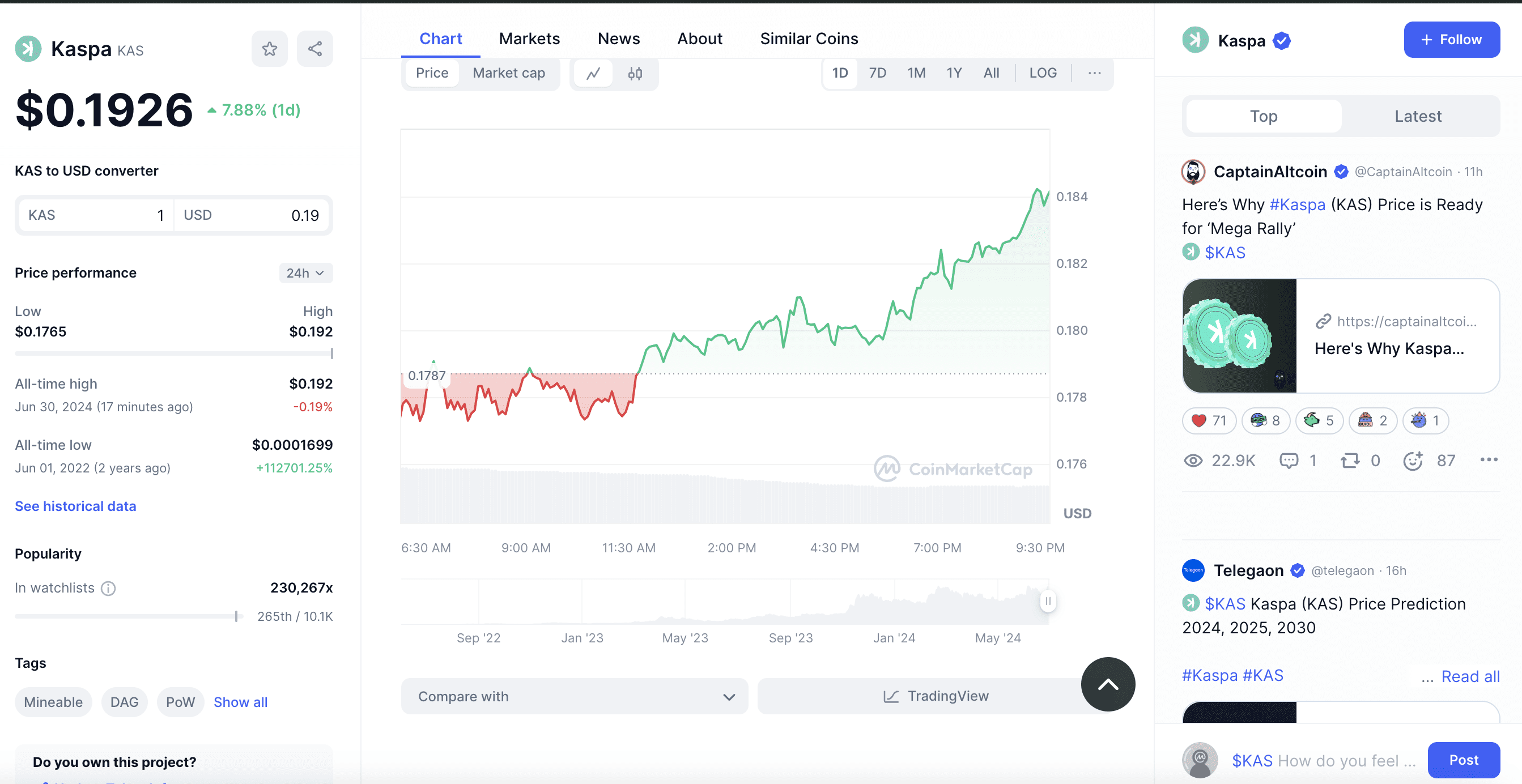 "Kripto je Mrtav" - Uvjerite se sami u to pogledajte, Kaspa ATH