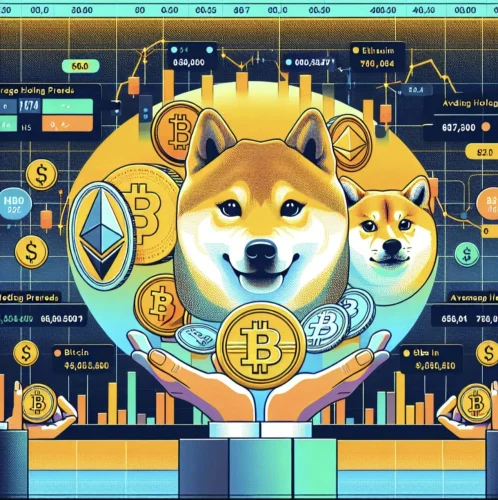 Ova šarena digitalna umjetnost prikazuje dva psa Shiba Inu, simbolizirajući Dogecoin, okružena simbolima Bitcoina i Ethereuma. U pozadini su dinamični financijski grafovi koji naglašavaju volatilnost kripto tržišta, stvarajući jedinstveni spoj inovacije i tradicije u financijama.