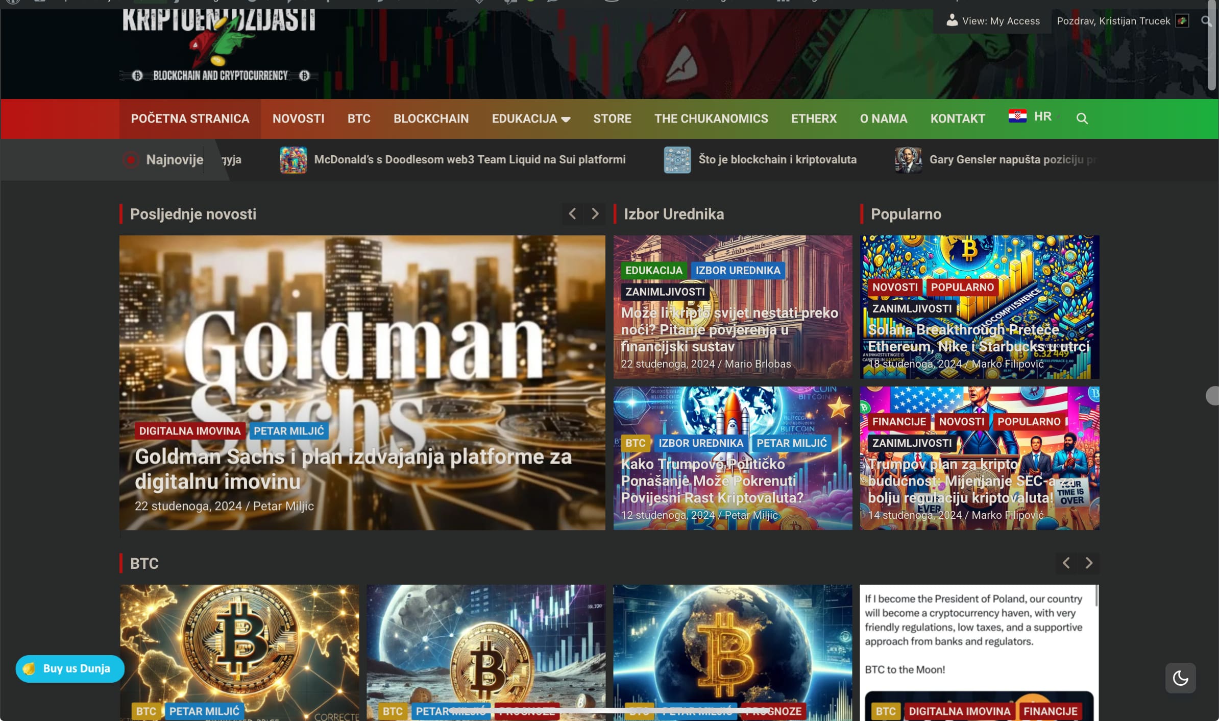 Kripto Vijesti Webpage Screenshot