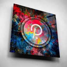 Apstraktna umjetnost s jarkim bojama, prikazuje kaotičnu igru dubokih plavih, crvenih i žutih nijansi. U središtu je krug s pitanjem, pružajući fokus usred kaosa boja, stvarajući kontrast reda i kaosa te evocirajući radoznalost i suvremene teme.