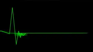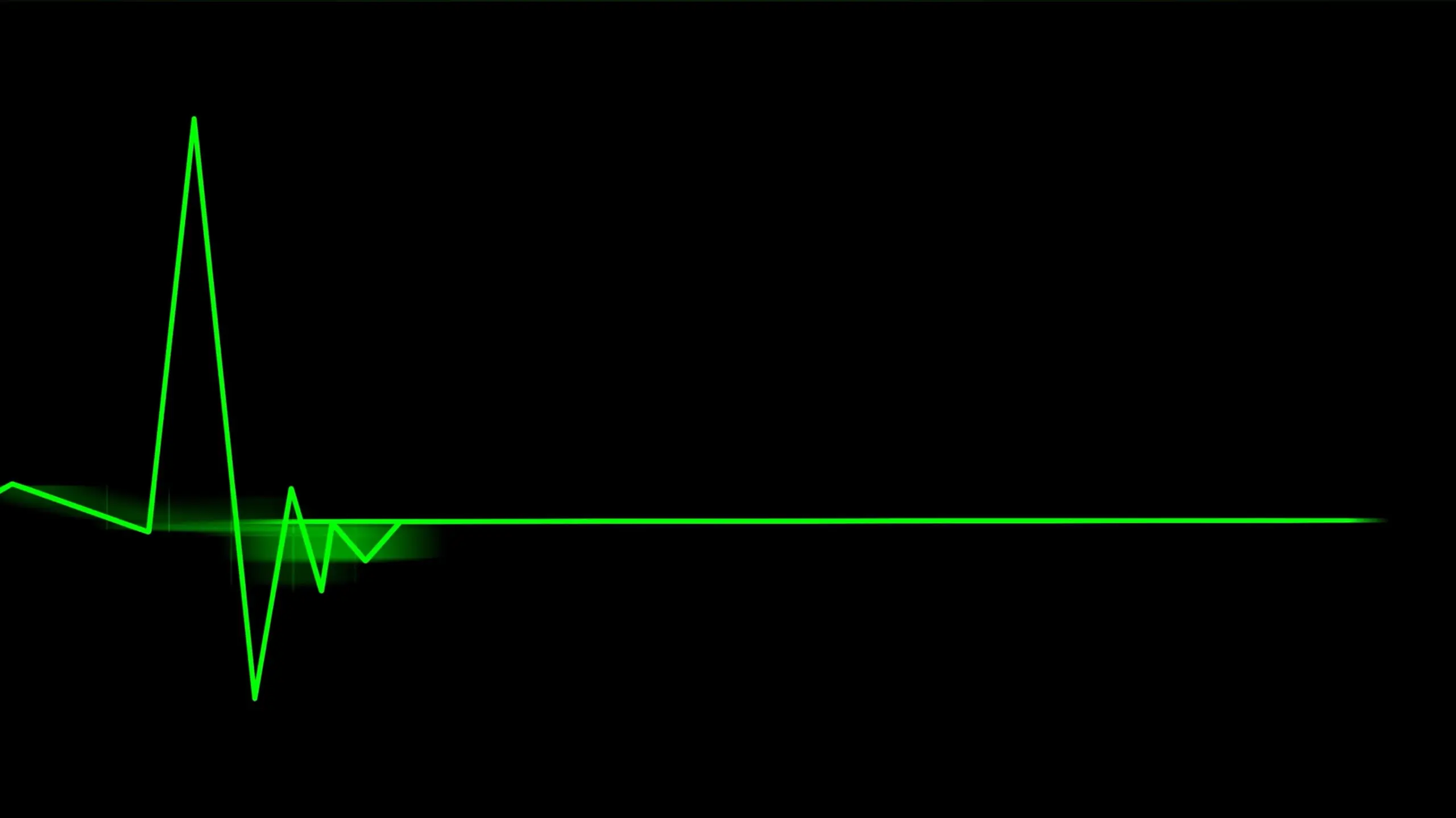 Na crnoj pozadini ističe se neon zelena EKG linija koja s lijeva prikazuje otkucaje srca, a zatim prelazi u ravnu liniju, simbolizirajući prestanak rada srca i smrt.