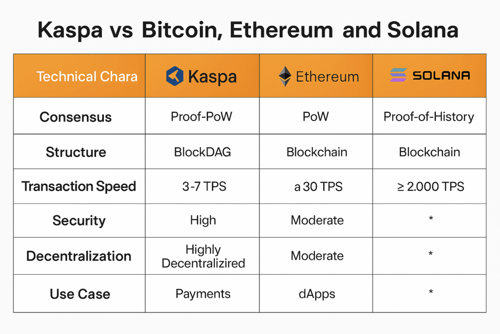 – U odnosu na Solanu, Kaspa nudi sličnu brzinu, ali uz stabilnost i otpornost na centralizaciju.