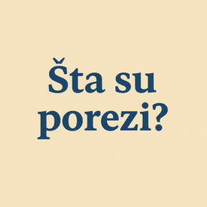 Slika prikazuje minimalistički dizajn s pitanjem Šta su porezi? na bež pozadini. Tekst je u tamnoplavoj, podebljanoj serifnoj tipografiji, što stvara jak kontrast i usmjerava pažnju na obrazovnu prirodu sadržaja o porezima.