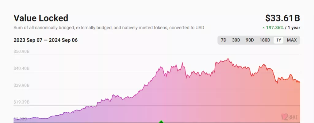 Podaci o L2Beatu pokazuju da je ukupna vrijednost zaključana u Ethereum L2 mrežama premašila 33 milijarde dolara od 6. rujna. To označava povećanje od 197% zbog ključnih prilagodbi tijekom godina.