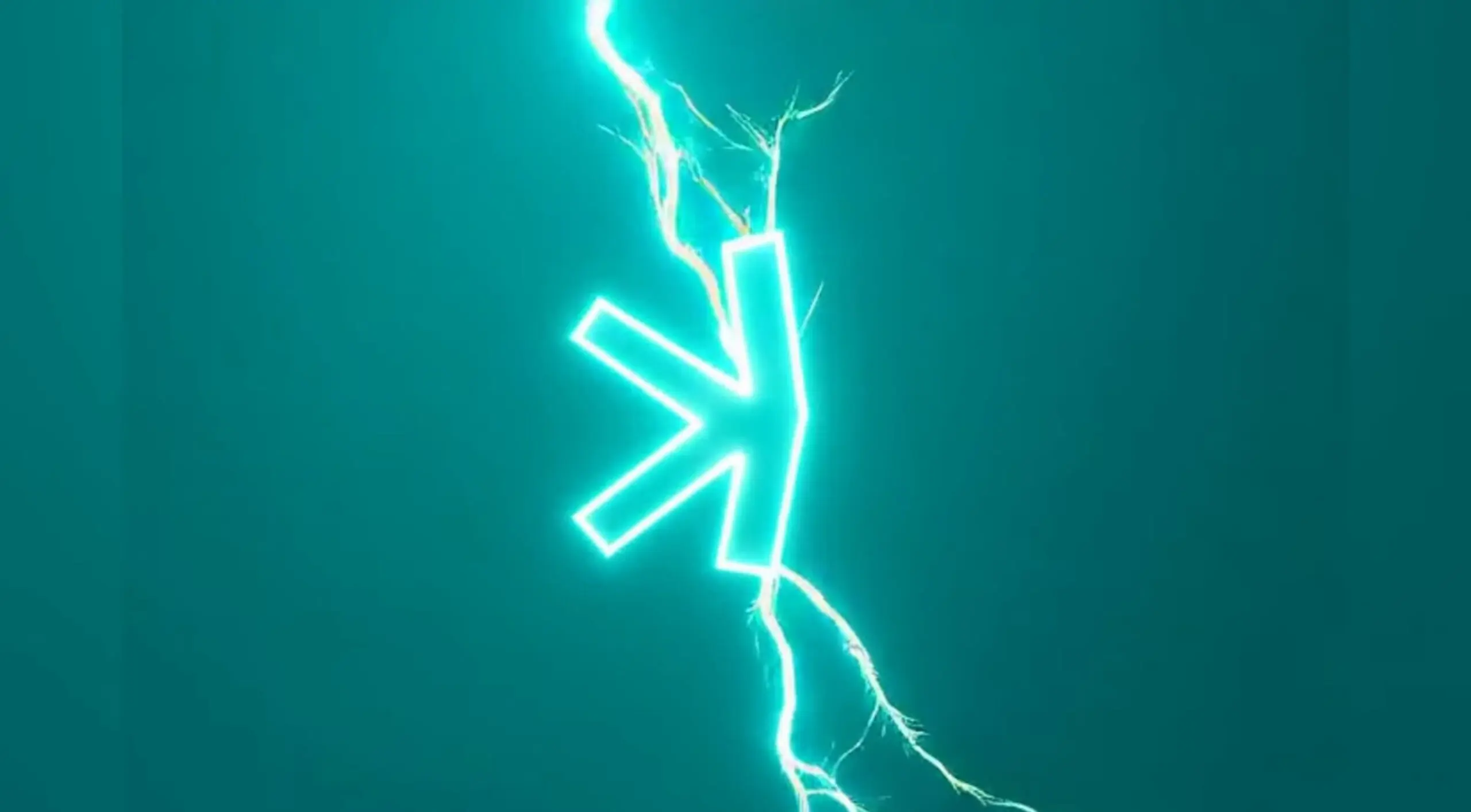 Stilizirana, sjajna tirkizna strelica usmjerena desno, okružena je dinamičnim, nazubljenim električnim munjama. Sve je smješteno na tamno tirkiznoj pozadini, evocirajući osjećaj energije, smjera i tehnološkog napretka.